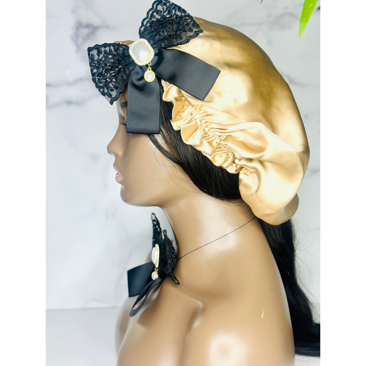 Experience the beauty of the Aurora Silk Bonnet—crafted with premium silk to keep your hair protected while exuding elegance. Designed for both day and night wear, this bonnet blends luxury and style effortlessly. Featuring delicate lace, a stunning bow, and a soft silk finish, it’s perfect for making a statement anytime, anywhere.
