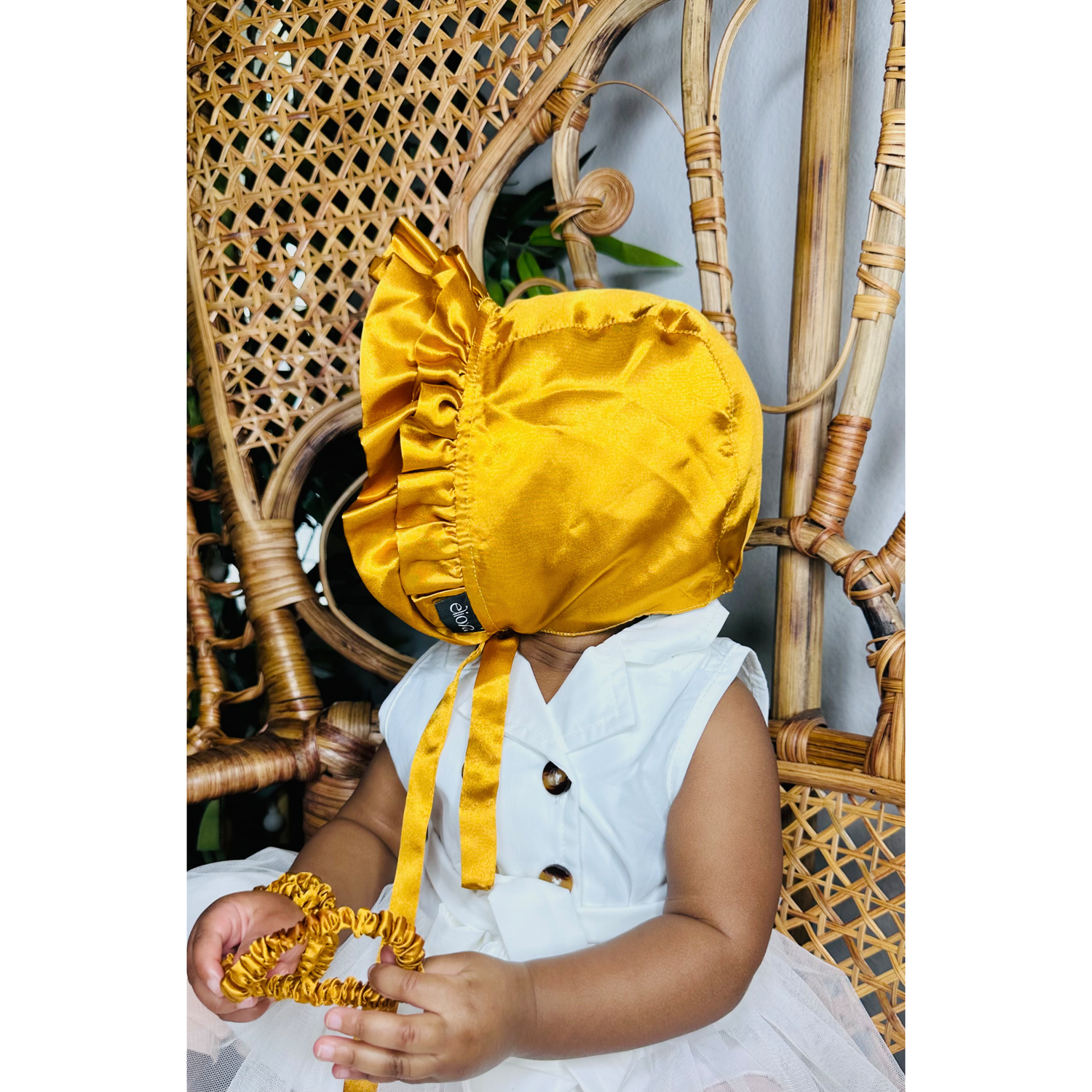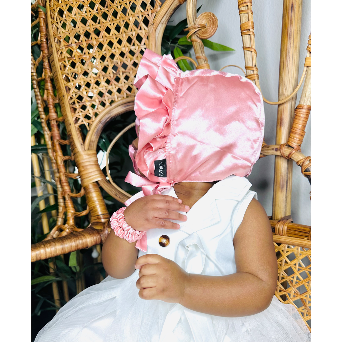 Wrap your little one in luxury with the Heirloom Satin Baby Bonnet. Designed with a soft, silky feel to protect delicate curls and baby hair, this exquisite bonnet is perfect for special occasions, photoshoots, or everyday elegance. The vintage-inspired design, gentle ruffles, and secure tie ensure both style and comfort. A keepsake piece meant to be cherished and passed down.
